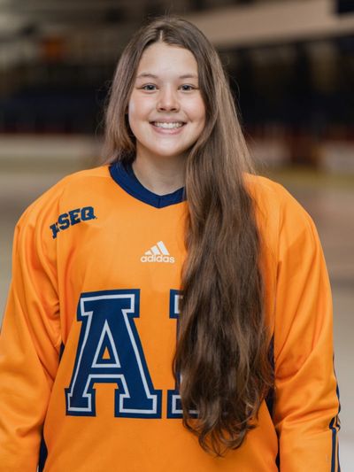 Élodie a commencé à jouer au hockey à l’âge de 7 ans avec les Félines du St-Laurent. Elle nous confie que ce fut une belle expérience et qu’elle en garde de très beaux souvenirs, entre autres des tournois extérieur et des amies qu’elle côtoie même encore aujourd’hui. En 2017, recherchant de nouveaux défis, elle a joué Bantam AA. Elle a pu participer aux Jeux du Québec et son équipe a remporté la médaille d’argent. Par la suite, Élodie a continué avec le Midget AA. L’an dernier, Élodie a été repêchée pour les Diablos du Cégep de Trois-Rivières. Elle retient de son parcours dans le hockey féminin, le plaisir, les leçons de vie, la compétition et tous les beaux défis.